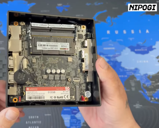 “The NiPoGi GK3 Plus N95 comes with all the important interfaces. In total, we have 4x USB Type-A and two HDMI ports with support for 4K60. Alternatively, the mini PC offers an analogue VGA connector which allows the use of older monitors. In addition, there is a network socket but no SD card reader or USB-C connector. Port placement is good and thanks to their chosen location, a tangle of cables should be avoided.“