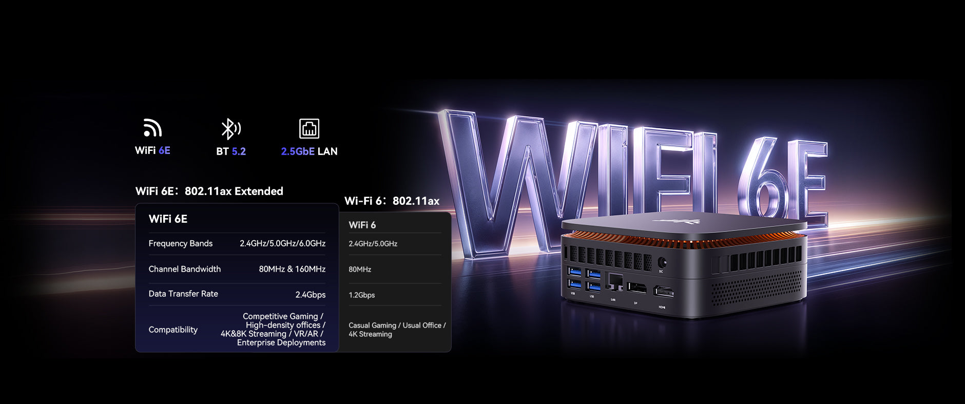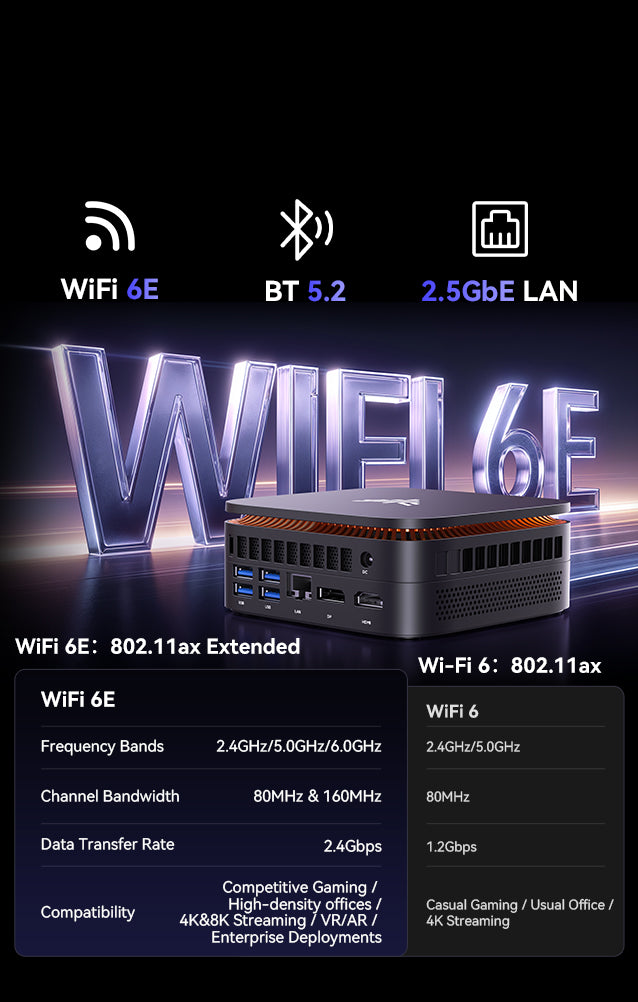 | Wireless Connectivity | WiFi 6E, BT5.2 (M.2 2230) |