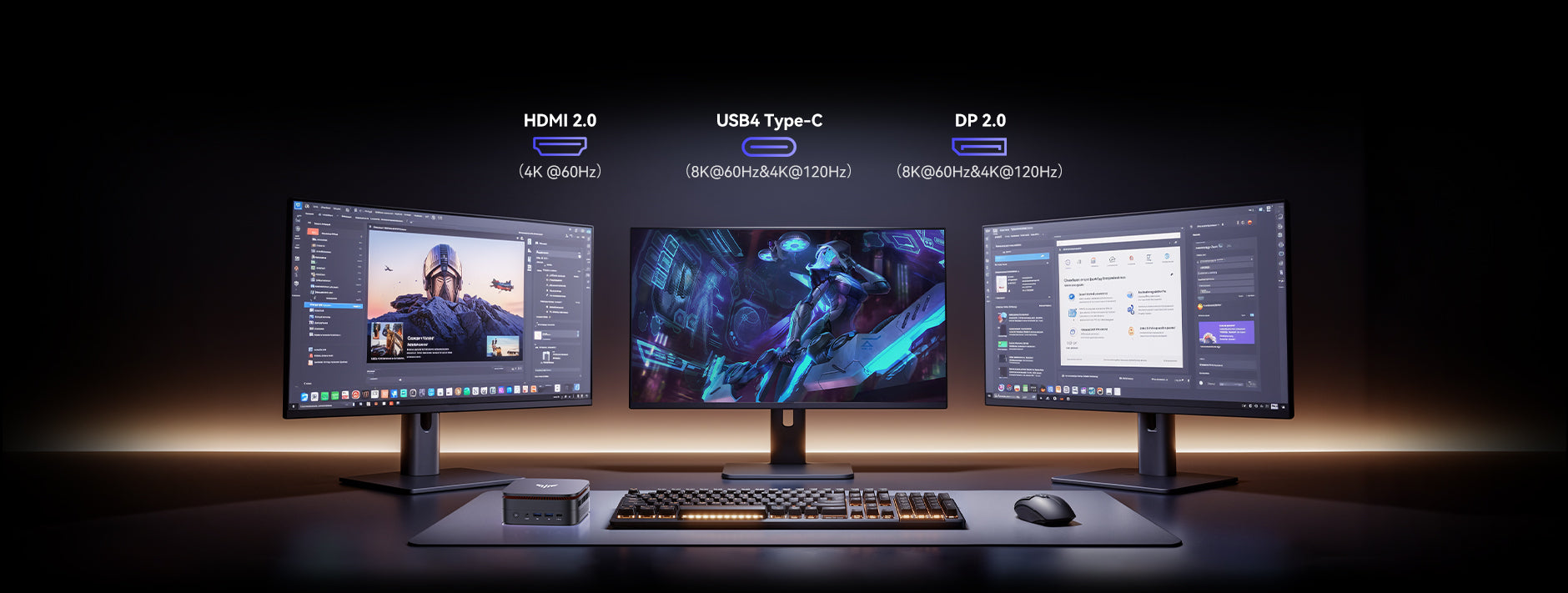 | Video Output | HDMI 2.0*1 (4K@60Hz) DP2.0*1 (8K@60Hz/4K@120Hz) USB4 Type-C*1 (8K@60Hz/4K@120Hz) |