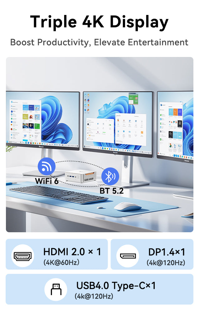 | Audio Output | HDMI 2.0 *1 DP1.4 *1 USB4 Type-C*1 3.5mm Phone Jack * 1 |