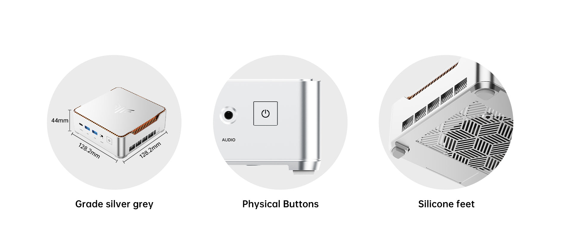 | Ports & Buttons | 2.5Gbps (10M/100M/1000Mbps adaptive) LAN Port *1 USB3.2 Gen2 Type-A Port *2 (front port) USB3.2 Gen1 Type-A Port*4 (behind port) USB4 Type-C *1 (Support DP1.4, 4K@120Hz, maximum 40Gbps data transfer, PD 15W output) DC IN *1 HDMI 2.0 *1 DP1.4 *1 3.5mm Audio Jack *1 Power Button *1 |