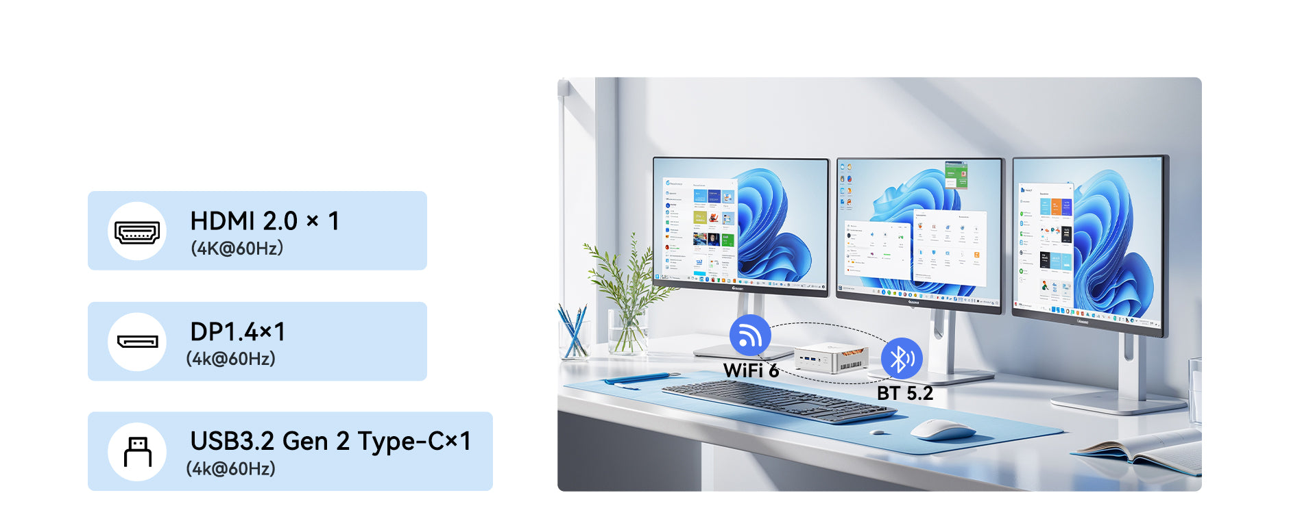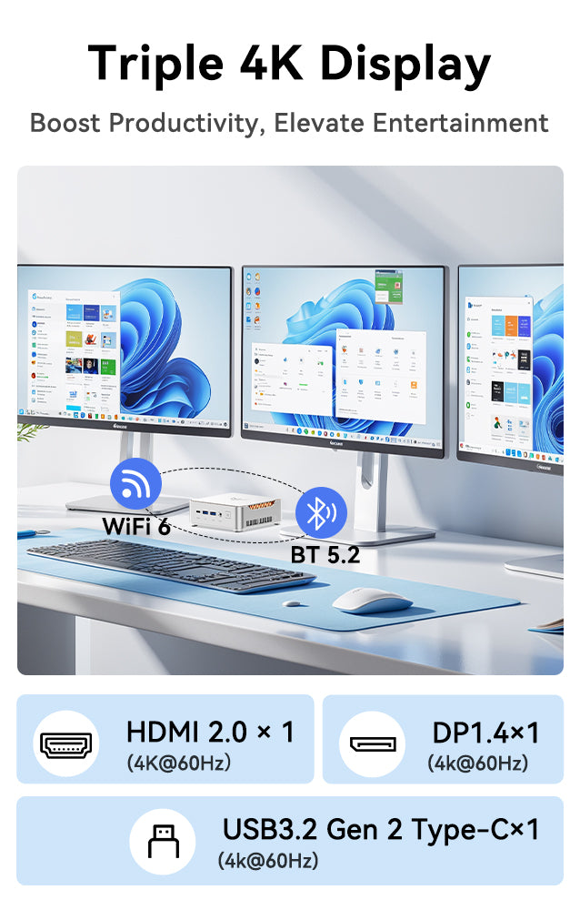 | Video Output | HDMI 2.0*1 (4K@60Hz) DP1.4*1 (4K@60Hz) USB3.2 Gen 2 Type-C*1 (4K@60Hz) |