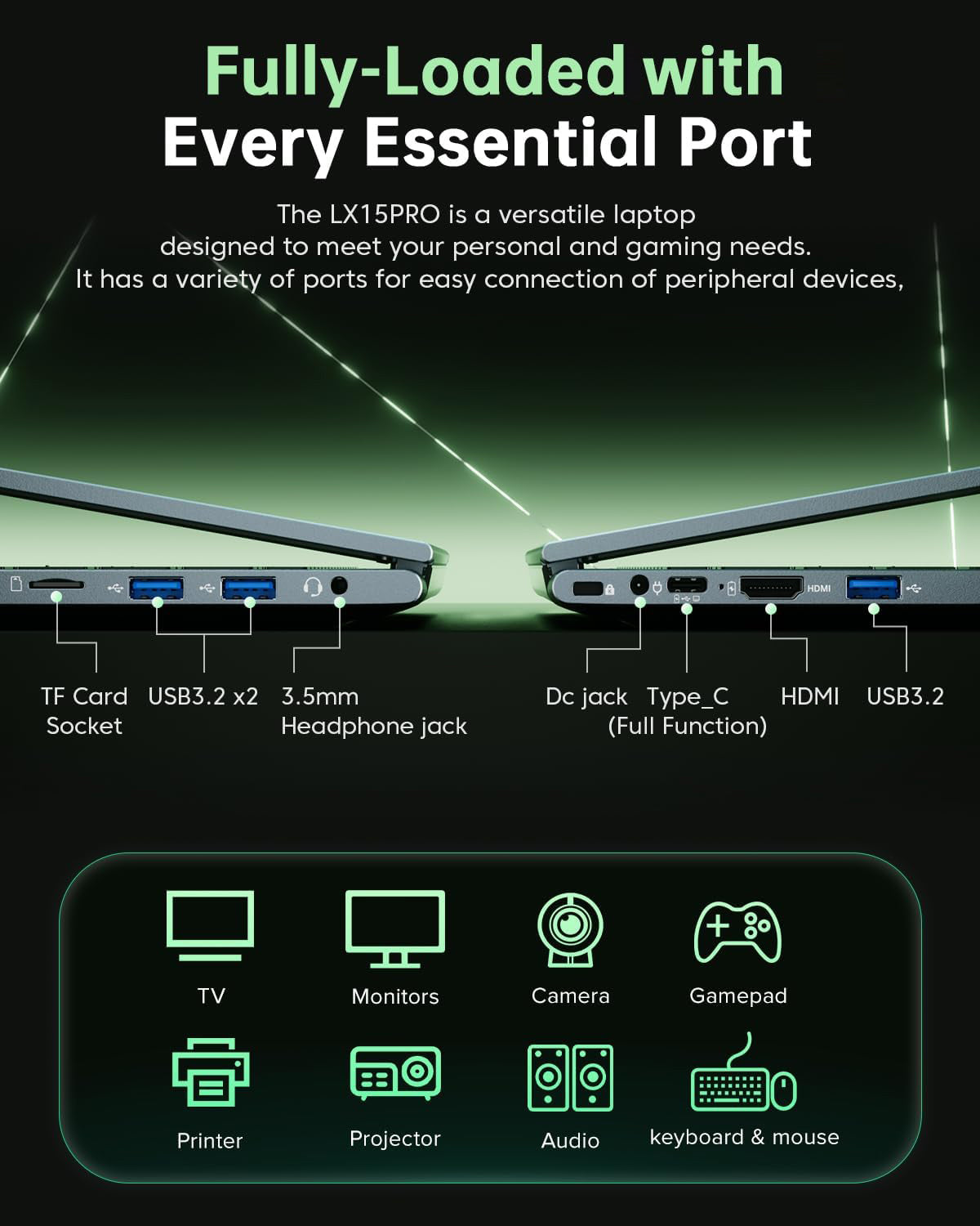 | Ports & Buttons | USB 3.2 *3 3.5mm standard headphone jack *1 DC IN *1 HDMI 1.4 *1 Type-C (full-function) *1 TF card slot *1 Keyhole*1 |